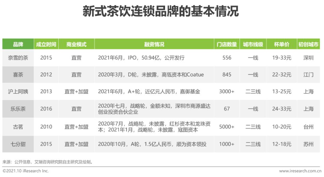 新式消费连锁品牌的发展状况知名茶饮品牌均为连锁经营模式,覆盖城市线级各有侧重