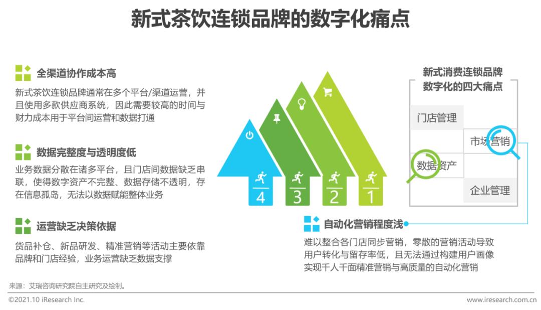新式茶饮连锁品牌的数字化痛点场景触点多且业务增速快,痛点集中在数据与营销两方面