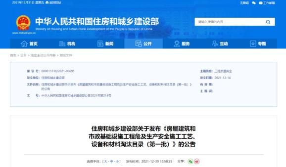 原标题:《住建部:共淘汰22项施工工艺、设备和材料!全面禁限此类脚手架、支撑架!》