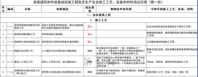 房屋建筑和市政基础设施工程危及生产安全施工工艺、设备和材料淘汰目录(第一批)