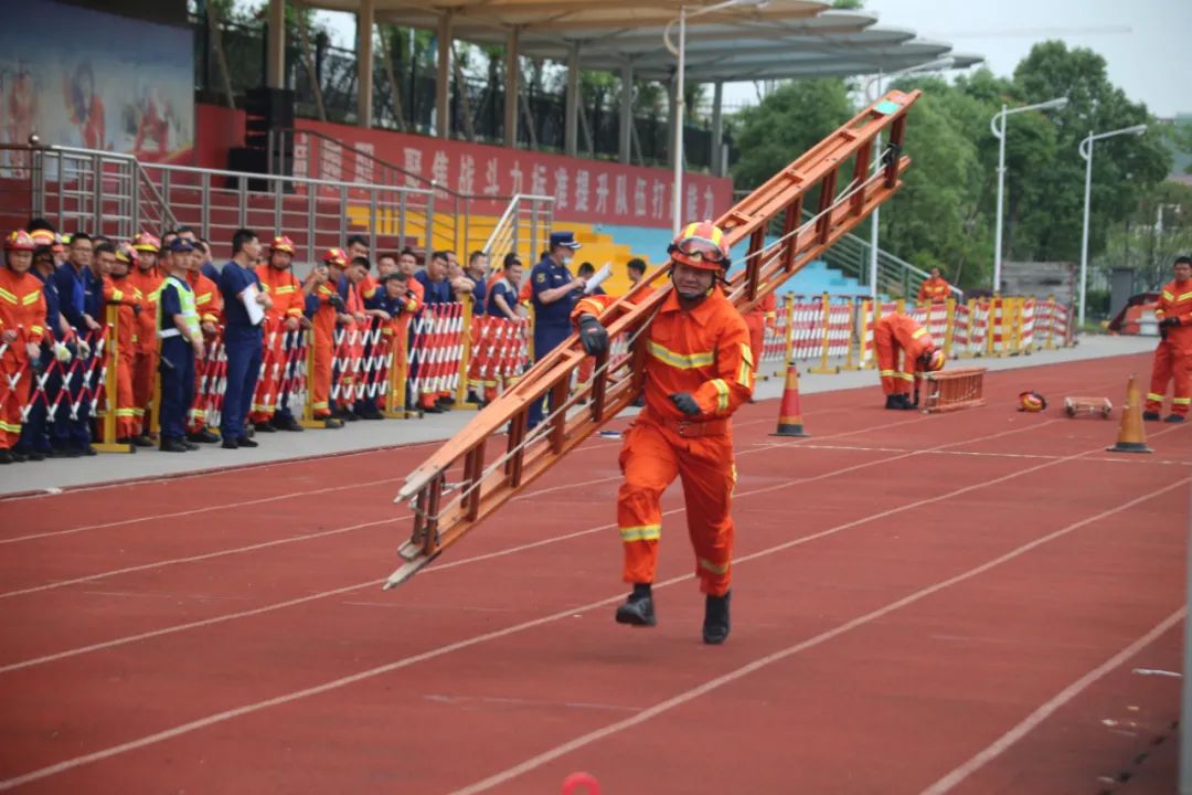 市消防支队承办5000米跑、60米肩梯、400米物资疏散、100米跑、负重上10楼等五个项目,全市20个消防救援大队、52个消防站、20个新投用消防站,共计500余名消防救援人员参加比赛。