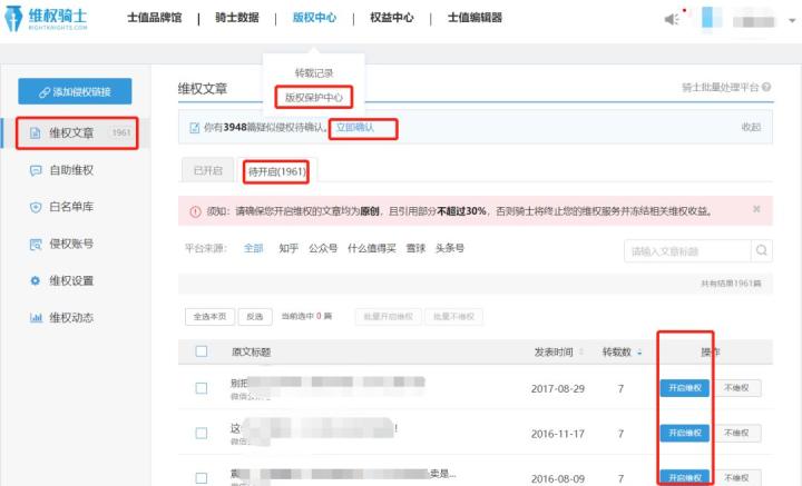 他们的核心思路是,知乎作者们将内容版权授权给“维权骑士”组织,然后拥有版权的维权骑士组织,作为一个专业法律团体,去专门向各个平台的侵权者维权。维权而来的赔偿所得,由作者和维权骑士共享。