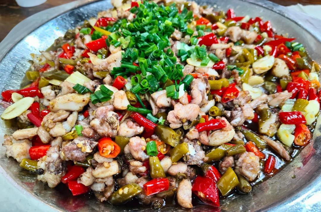 满满一盆的兔肉与密密麻麻的泡椒、藤椒、豇豆让人看着就食欲大增,无论是兔肉还是配菜都腌制的十分酸麻入味,好吃到根本停不下来。