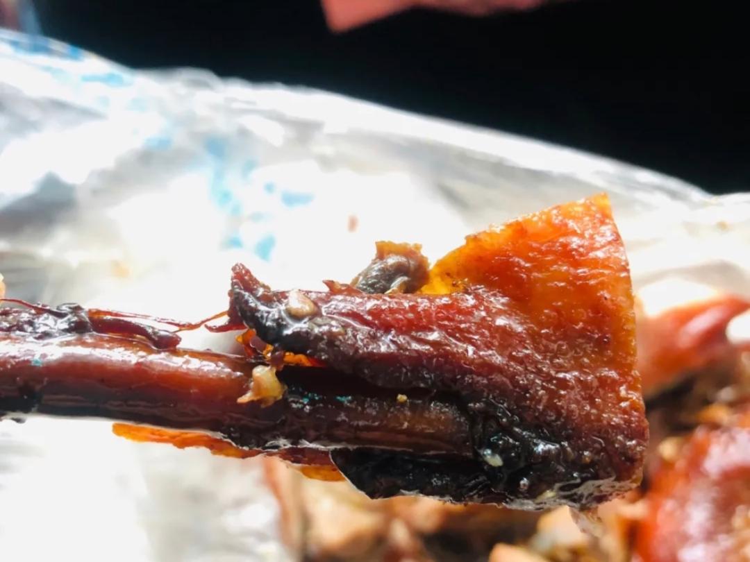 肘子皮在炉火中烤糊,略带脆脆的口感再放入锅中炖煮至软烂,诱人的酱汁渗透在肉质的纹理中,一口便让人欲罢不能。