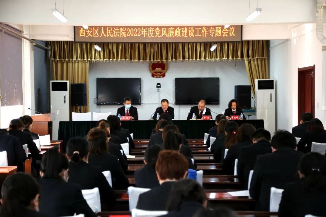 为深入学习贯彻党的十九届六中全会精神,巩固政法队伍教育成果,持续推进全面从严治党、从严治院、从严管理,锻造让党放心、忠诚可靠、清正廉洁的过硬法院队伍。1月4日上午,西安区人民法院召开2022年度党风廉政建设工作专题会议。西安区人民法院全体干警参会。