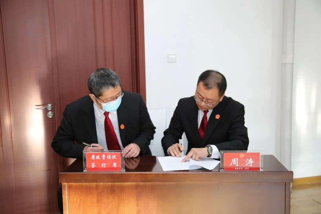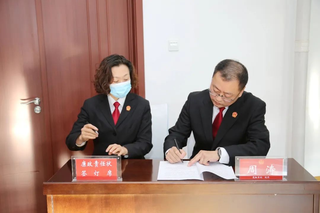 会上,党组成员、副院长常晓辉带领干警学习《党的十九届六中全会节选(关于全面从严治党)》《省纪委监委“九严禁”纪律要求》和区纪委《党员干部和公职人员涉企服务“十不准”》 的文件精神。党组副书记、副院长乔松全面总结2021年度党风廉政建设工作的开展情况。党组书记、院长周涛同院党组成员签订2022年度党风廉政建设责任状并对西安区人民法院2022年度党风廉政建设工作提出要求。