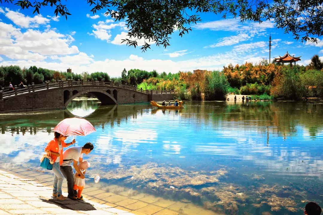 格尔木,地处柴达木盆地的海西蒙古族藏族自治州。受地理位置、区位条件的影响,生态文明建设成为城市建设中的重要组成部分,从上世纪五十年代慕生忠将军在戈壁滩中插下一把铁锹起,格尔木人以勤劳的汗水滴灌,赋予了这片古老的土地越来越多的绿色生机。一幅天蓝、地绿、水秀的绿色画卷散发出迷人的风采,缓缓铺就格尔木生态文明建设的芳菲路径。植绿荫城 大漠之上现“明眸”
