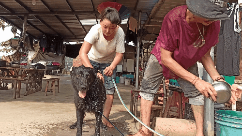 扎西和卓玛在帮狗狗洗澡。/hello阿派