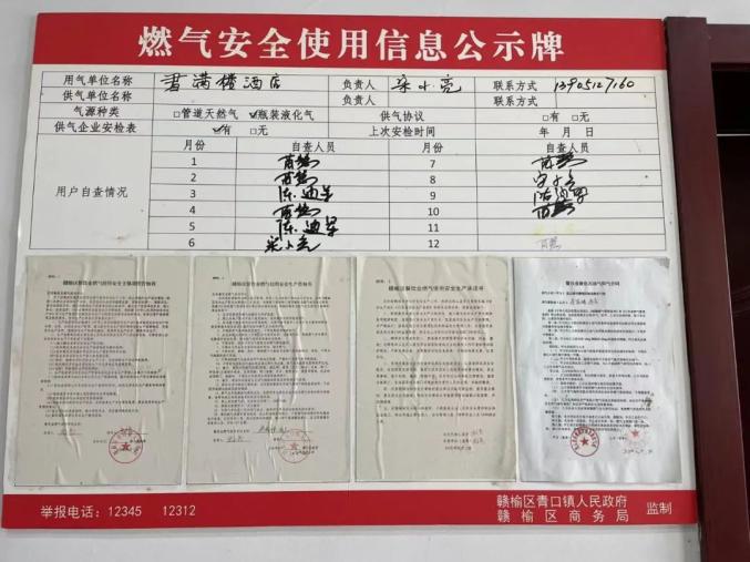 4、显著位置张贴《非居民用户燃气安全使用信息公示牌》。