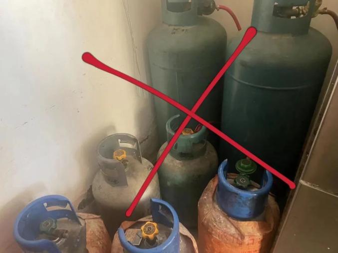 5、餐饮单位使用液化气存瓶总重量超过100公斤(折合50公斤2瓶或15公斤7瓶),必须设置专用气瓶间,不得在不具备安全条件的场所使用、储存燃气。