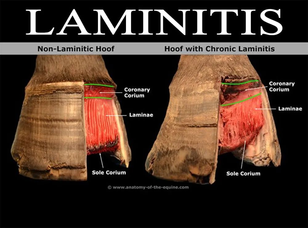 这种情况持续下去,蹄骨就会插破蹄壁,插入蹄叶,马就很容易患上一种非常棘手的疾病——蹄叶炎(laminitis)。英国赛马管理局的兽医学教授 Tim Morris 解释道,骨折的马很容易患上蹄叶炎。