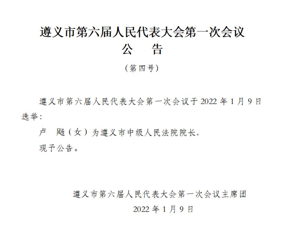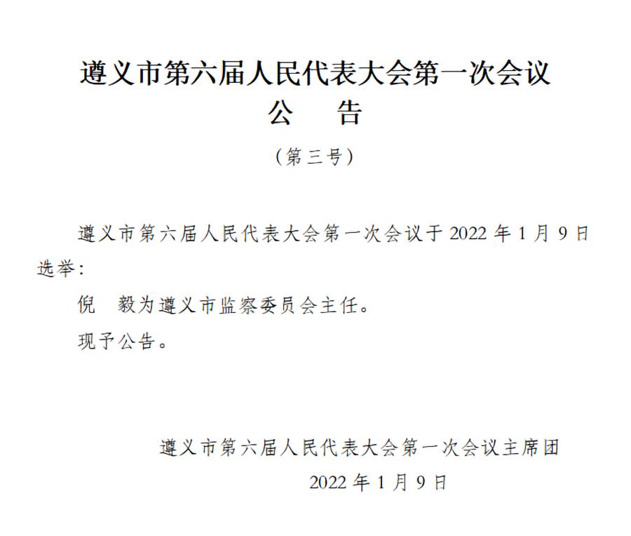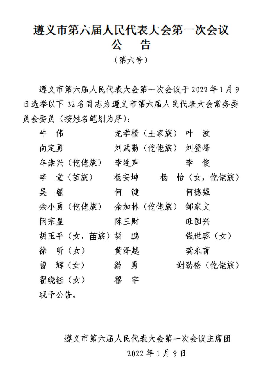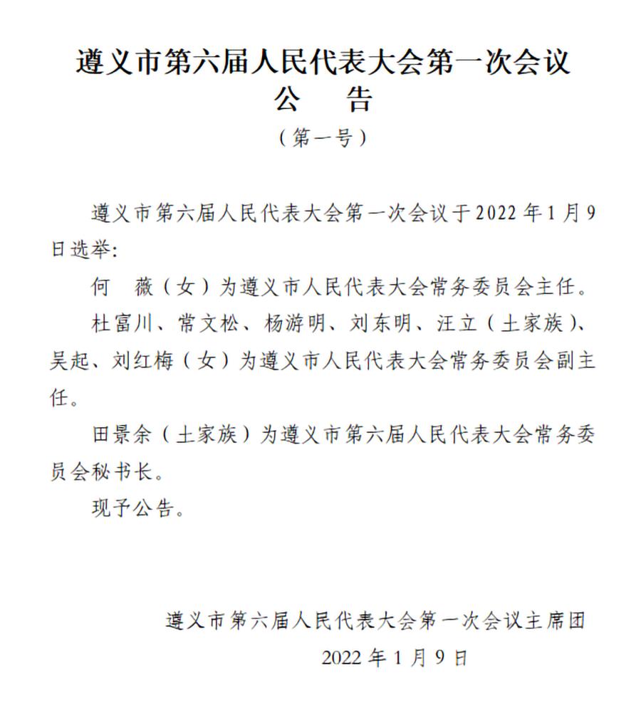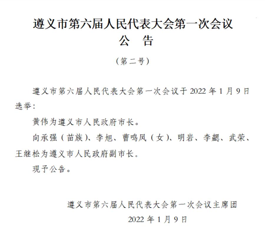 来源:贵州日报天眼新闻原标题:《遵义市新一届人大常委会、市政府领导班子选举产生》