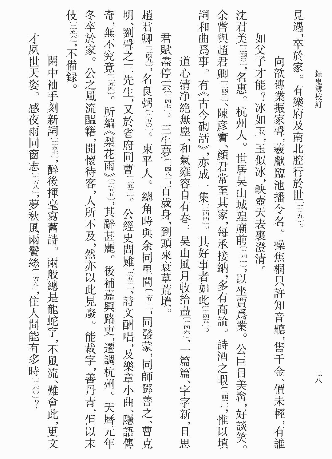 《录鬼簿》及《续编》所记曲家,字号、籍里多失载,王钢凭借现代化手段,如大海捞针般寻找文献,决疑补缺,多有贡献。如高克礼(高敬臣)的里籍家世,据元人黄溍《济南高氏先茔碑》及《元史·地理志》考证厘清。还有金尧臣,王钢据《续录鬼簿》“淮东人,居吴门,左司郎中”的简单记载,以“淮东”“吴门”“左司”三个关键词查找对应人物,大胆推测其为余尧臣,进而考述其生平。余尧臣,诗人,与高启同为吴中“北郭十友”之一。只是或言余尧臣为永嘉人。徐孟曾则据《康熙江南通志》《万历武进县志》等考得其生平大略。凡此之类,可见王钢先生校订用功之深,也说明现代手段在古籍整理中应用之效。其三,校订中引用之书,三十年前初校时为条件所限,用了当时可找到的版本。重校则都尽量换用善本。如《资料汇编》引元许善胜《中州启札序》,国家图书馆藏抄本《中州启札》脱去序文,旧版从《爱日精庐藏书志》引,后又见南京图书馆藏爱日精庐钞本、台北“国家图书馆”藏清劳权钞本,文字皆有异,最终辗转得见日本静嘉堂文库藏元刻本,序为抄配,照元版摹写,字为草书,不易辨,故后世传抄者多生误,本次得以校订。再如陈撰《玉几山房听雨录》,原用《古学汇刊》本,其“胡正臣”之名作“正居”,“鲍天祐”之字作“天祜”,是陈氏所见《录鬼簿》原文不同,还是《听雨录》刊本有误?新版查阅了南京图书馆藏稿本,方知原稿不误,乃传抄刊刻致误。