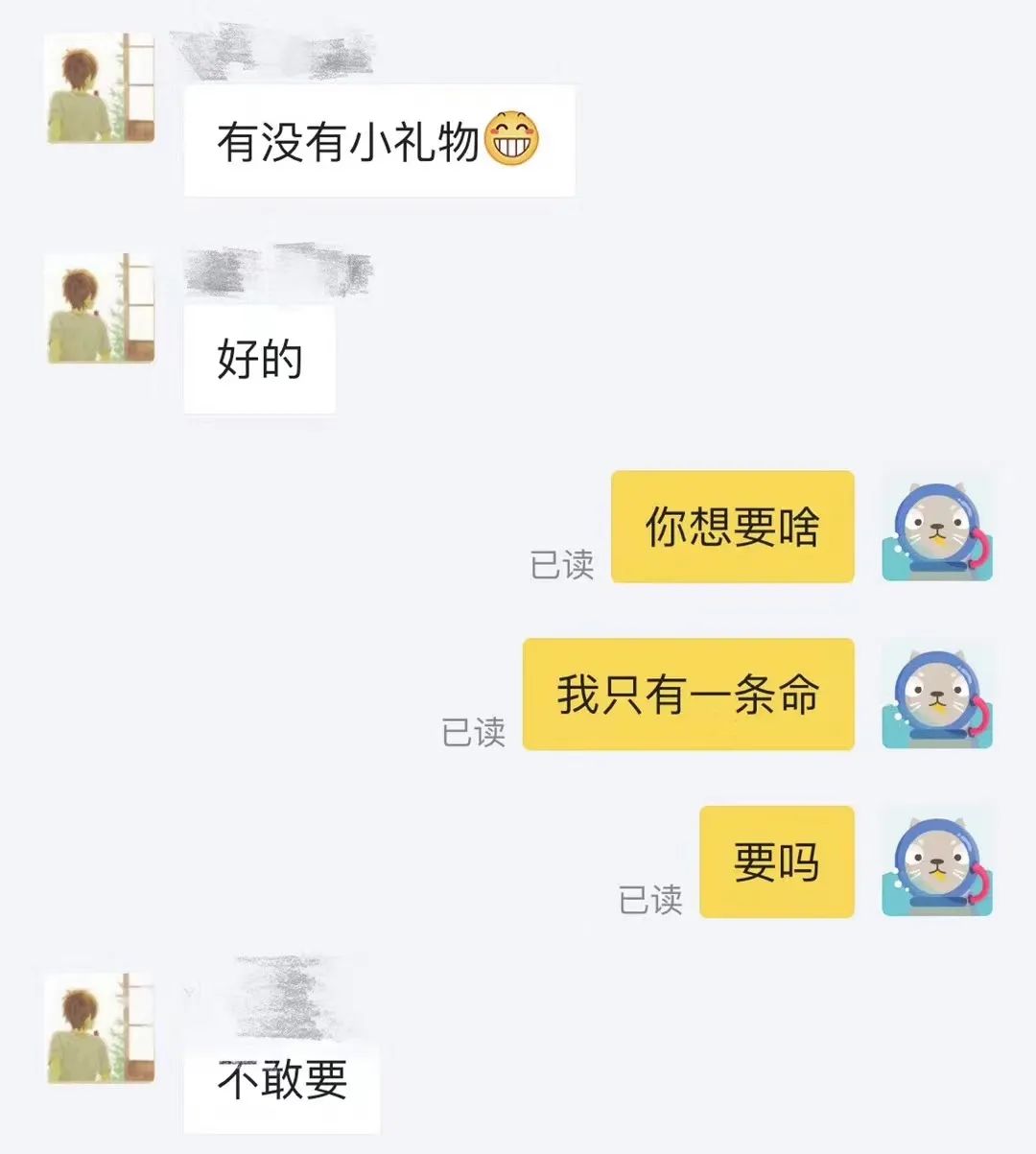 想起有一次在闲鱼卖东西,一个男生买家向我要小礼物,我灵机一动自以为用幽默劝退了他。