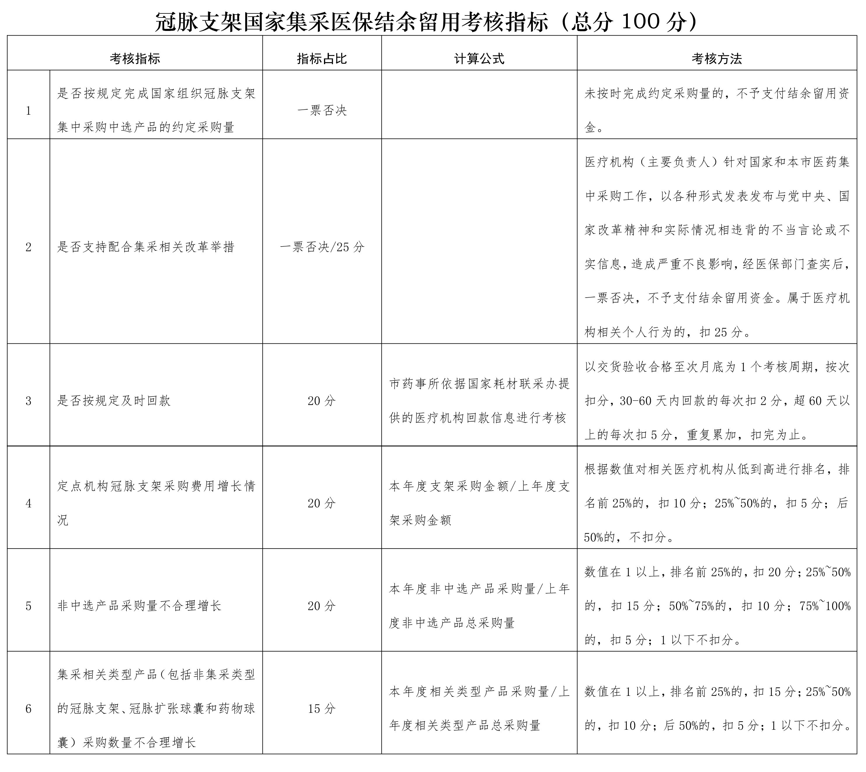 首先,“是否按规定完成国家组织冠脉支架集中采购中选产品的约定采购量”可以一票否决,考核方法显示,未按时完成约定采购量的,不予支付结余留用资金。