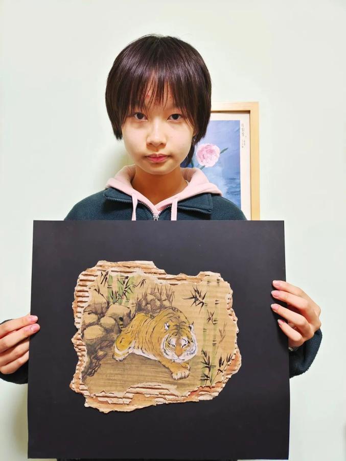《虎虎生威》—徐刘萱创作灵感:随着我们国家对环境保护的重视和对野生动物栖息地保护的各类举措相应落实,我国的自然环境变得越来越好,更适合各类野生动物的生存。马上2022虎年即将到来,所以我就画了一幅《虎虎生威》作品,画作展现出老虎的威武霸气,胖胖的形象也透出“大猫”的憨态可掬,希望虎年大家都能生龙活虎,精神抖擞面对每一天。