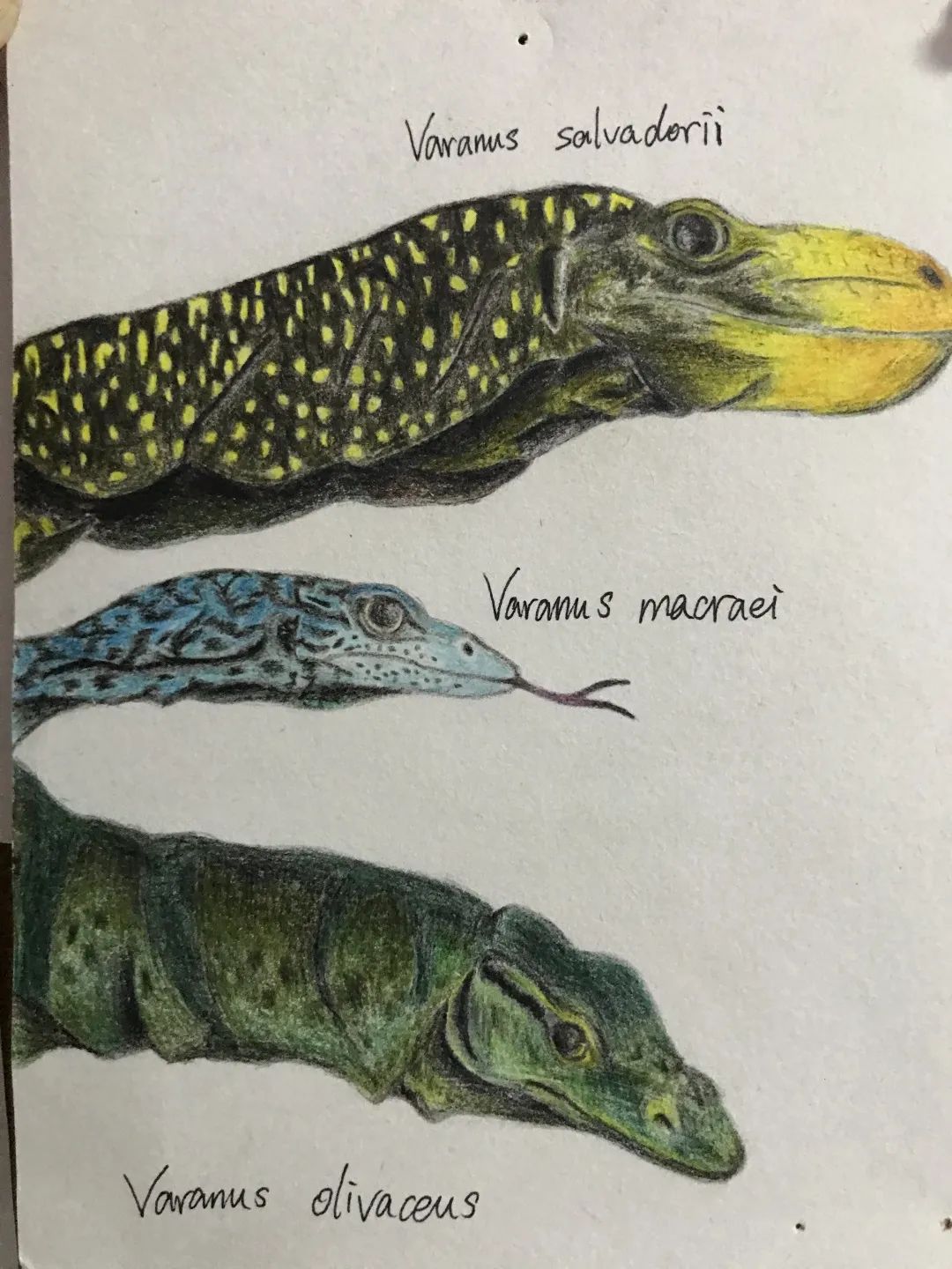 《巨蜥》—吴楚鋆创作灵感:这幅画上分别画了萨氏巨蜥,蓝树巨蜥和葛氏巨蜥。这三种巨晰都生活在东南亚的树上,是树栖巨蜥。其中的葛氏巨蜥甚至会取食一些水果。巨蜥是我最喜欢的晰赐。即使一些巨晰十分常见,像泽巨蜥;但很多巨蜥仍是十分罕兄的,濒危的葛氏巨晰都一度被认为灭绝了。我希望大家可以保护巨晰,让生物更加多样化,让生态越来越好!