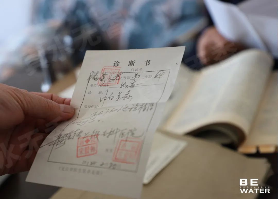 裕法医的诊断书。@黄蓉摄裕法医的书桌上堆着这些年他反复查阅过的医学书籍,也保留着很多与讷河案有关的照片资料。其中有张和公安部领导的合影,裕法医说他是在里面官最小的,可能就是因为他的出色表现,领导合影中也有他的一席之地。
