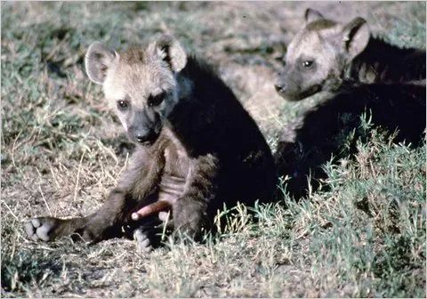 然而,雄性交配再困难,也比不上雌性分娩时的辛苦。雌性生娃时,常常发生严重的撕裂或难产。斑鬣狗宝宝从“假阴茎”生出来的时候,也可能受伤。据统计,在第一次分娩时去世的斑鬣狗有大约15%,而第一胎死亡的比例高达60%