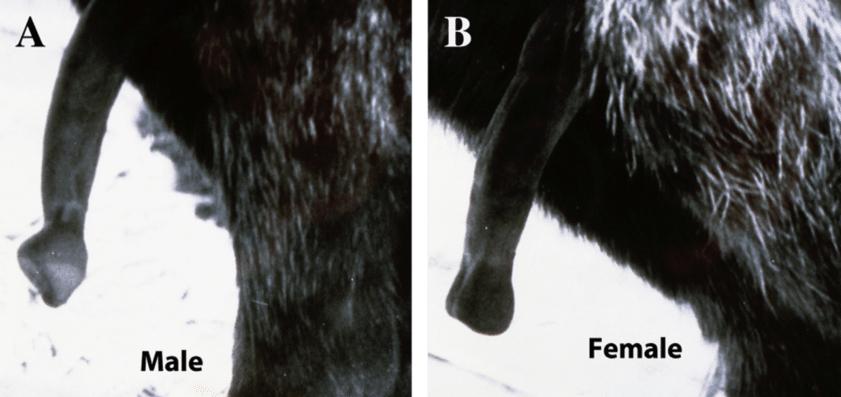 如果放大对照看的话,形状是不一样的 | 参考资料[1]细看的话,雌性的阴茎上还会有因为分娩而撕裂的粉色伤痕。