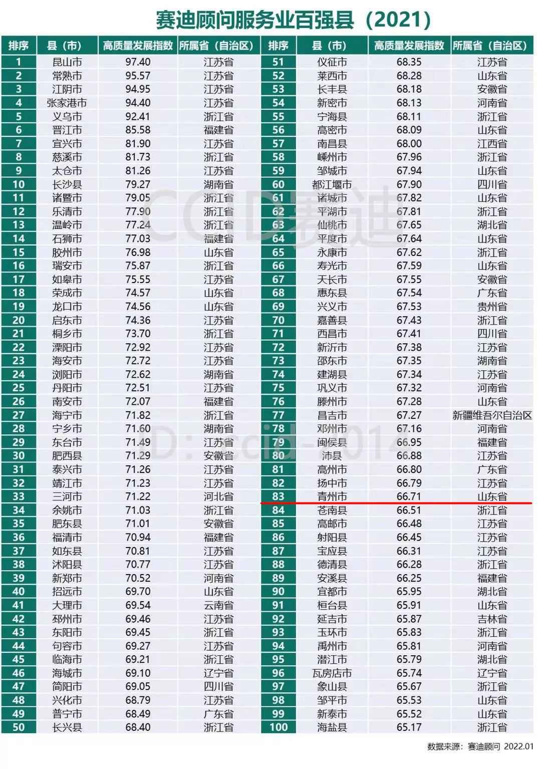 重磅!2021服务业百强县公布,青州榜上有名!