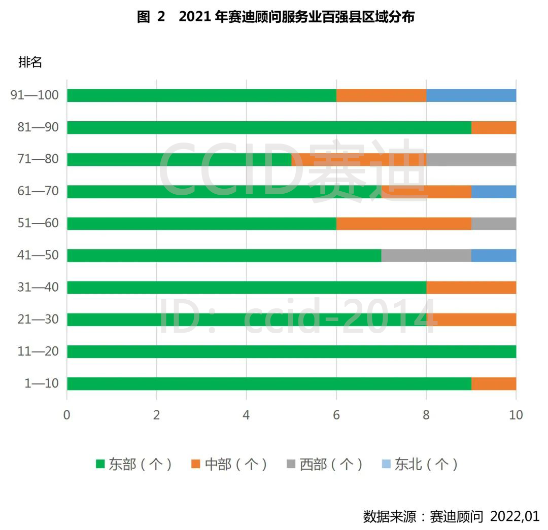 ▲图2 2021年赛迪顾问服务业百强县区域分布