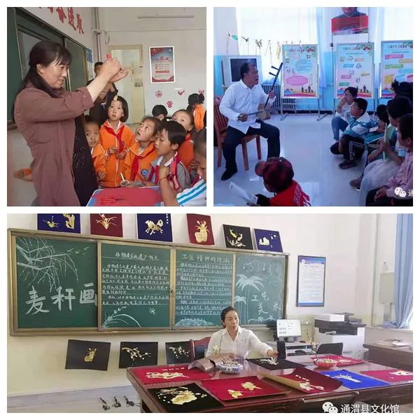 通渭县常家河固堆河学校、通渭温泉路小学、通渭县职业技术学校先后开设通渭皮影、通渭剪纸和麦秆画制作等非遗课程,邀请非传承人为中小学生介绍非物质文化遗产的发展历史、技艺要领等方面知识。