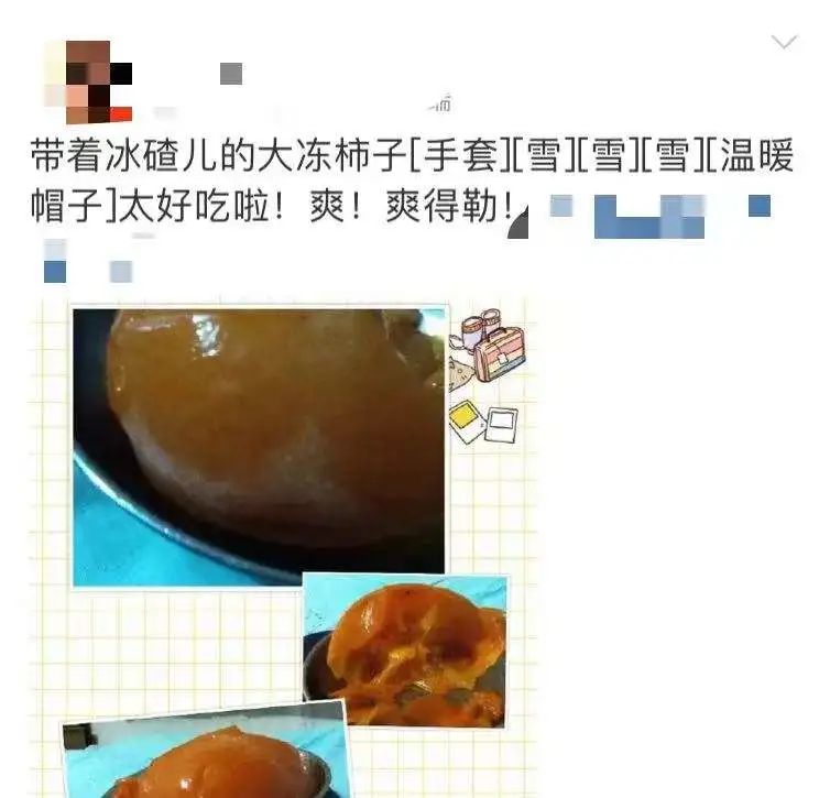 人们在冻柿子身上获得了开放式体验,衍生出的食用方法全凭自己心意。有位朋友曾公开表示,他发现了更多隐藏的功能性,言语间充满了敬意。