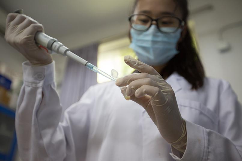 2017年7月17日,中科院植物研究所科研人员在实验室里研究新品种葡萄。图|新华社