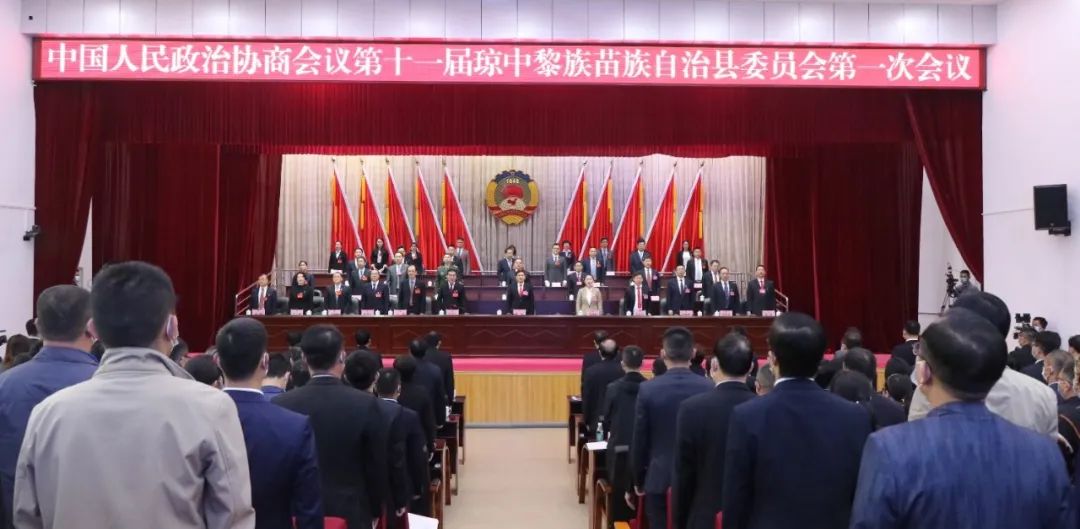 上午9时20分,在激越雄壮的国歌声中,政协第十一届琼中黎族苗族自治县委员会第一次会议开幕。
