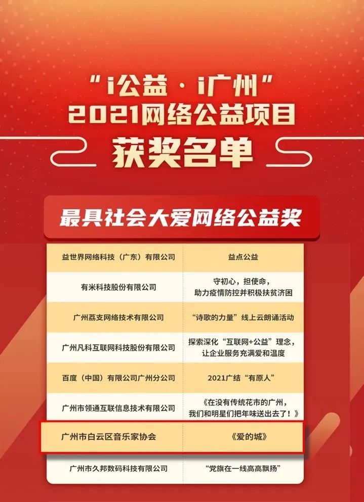 近日,由广州市委网信办、广州市互联网行业党委主办,广州市网络文化协会承办的“i公益·i广州”2021网络公益项目评选活动结果公示。
