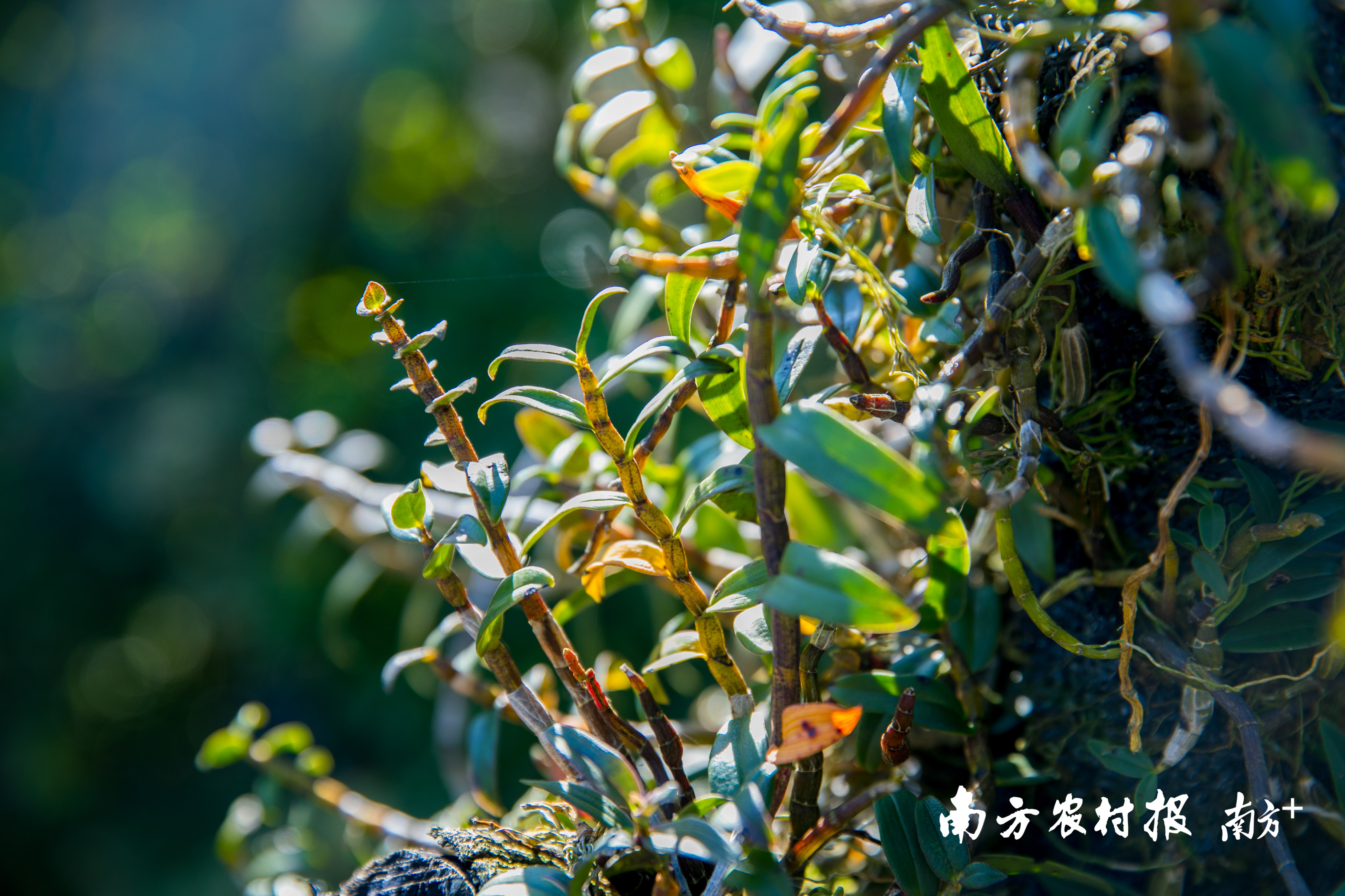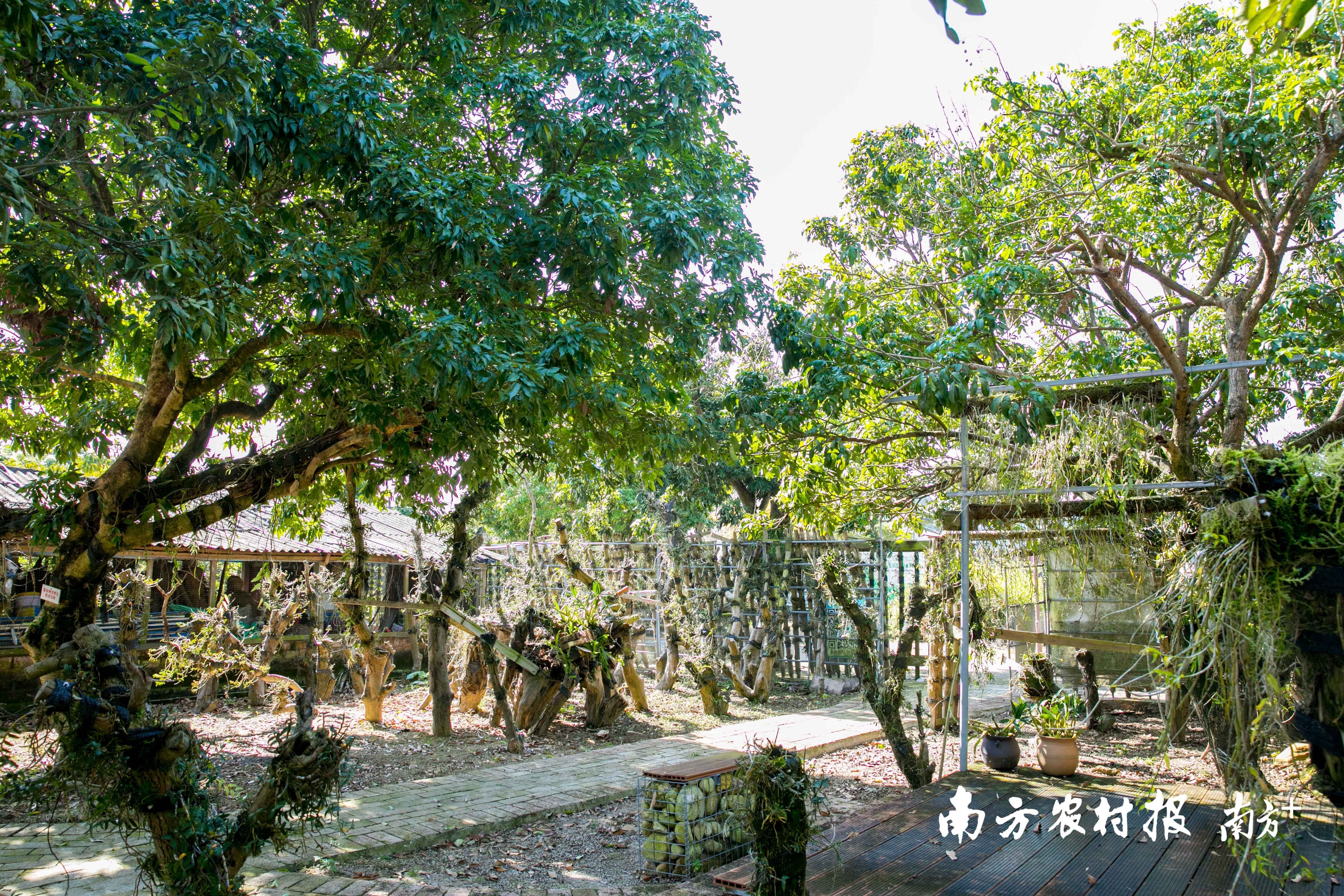 在生态园内,铁皮石斛被嫁接至不同品种的树木上进行种植。 南方农村报 吴秒衡 拍摄