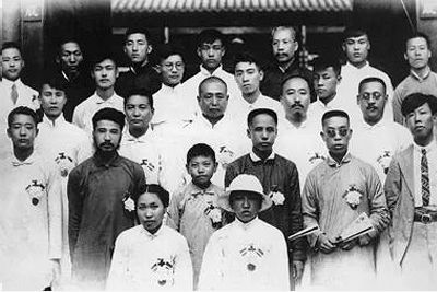 1919年9月16日,周恩来(后排中)与觉悟社成员合影1920年1月29日