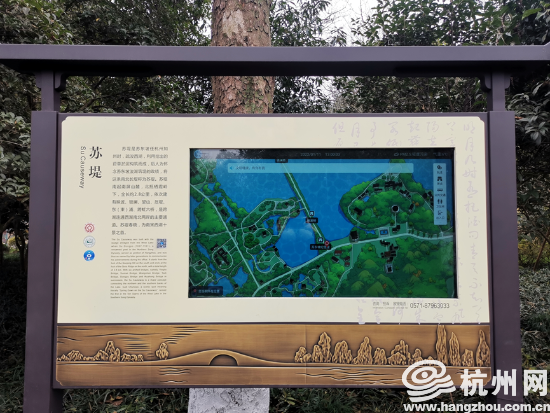 还有苏堤南入口道路两边的石版画讲述的是苏东坡在杭州的故事,2.8公里长的苏堤草坪围栏的木桩上雕刻着清雅的宋词,就连公园旁的商店也重新安装上了宋式格子窗,市民游客在举目低眉时,能感受浓郁的宋韵文化。