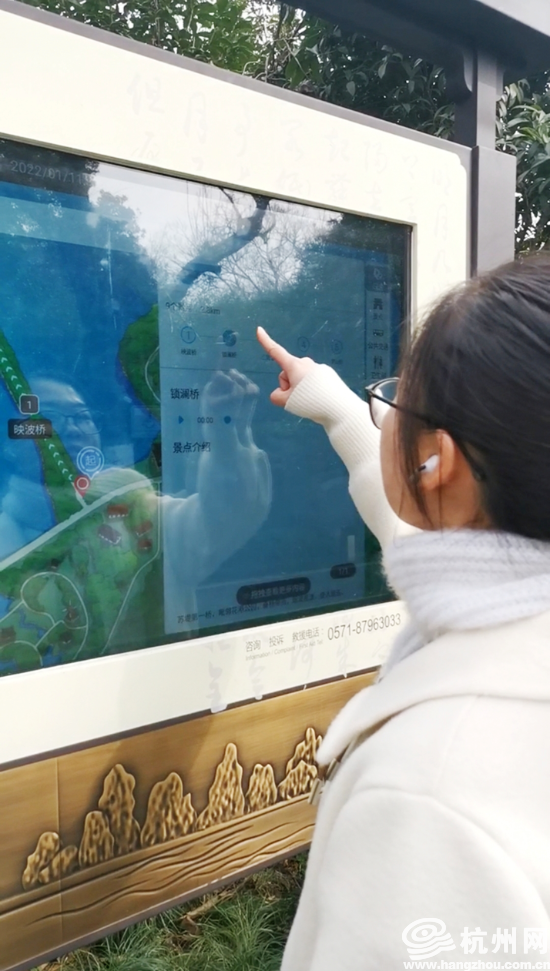 “我觉得这个智慧屏幕像个放大版的手机,有很多关于怎样游玩西湖的智能服务,而且信息非常全面,感觉非常实用。”余同学在杭州上大学,她和同学刚到苏堤南入口就用智慧大屏导览了一番,为游玩做足准备。