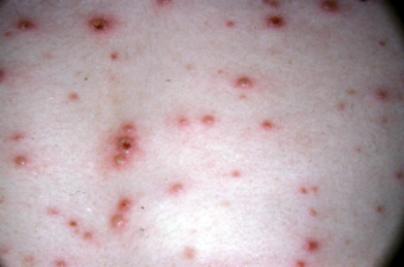 同时身上有新鲜的皮疹不断出现,可以看到多处皮疹处于不同的阶段。
