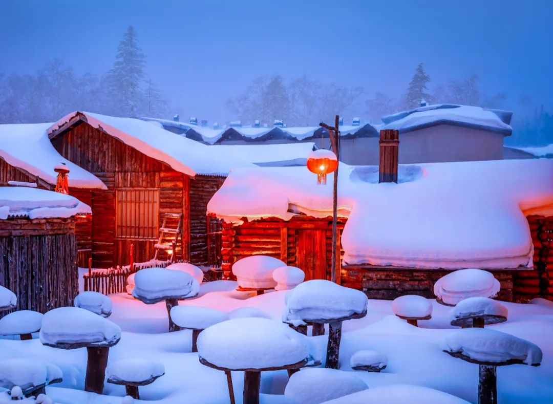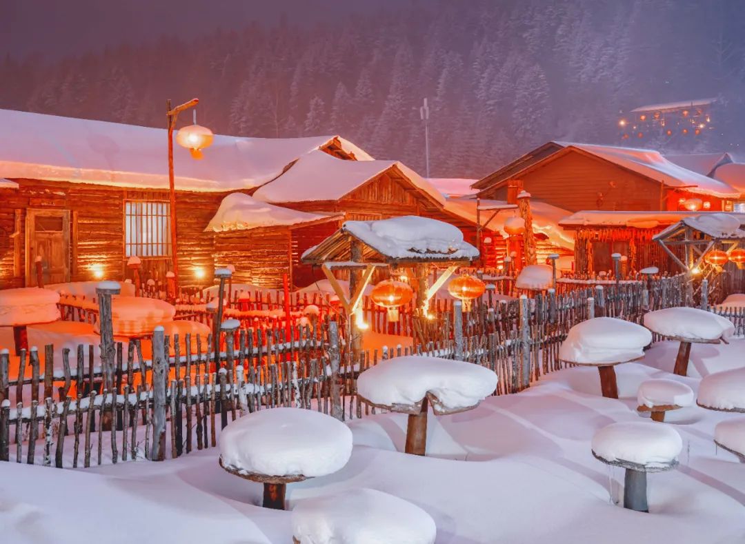 雪乡也叫做双峰林场,位于海林市西南山区。在这里体验滑雪、玩雪圈,或者起个大早坐雪地摩托上山看日出。周围的“雪蘑菇”让你仿佛置身童话世界,每个房屋门前挂满的红灯笼,红黄灯光照映着白雪,交织出雪乡柔美的夜色。