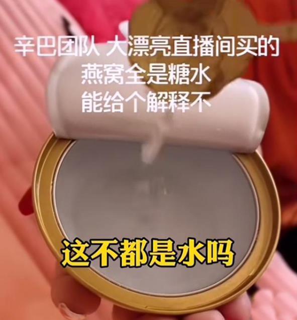当年11月4日,有网友质疑“辛巴”辛有志及其徒弟“时大漂亮”的直播间里售卖的燕窝产品“像糖水一样,没什么固体”。