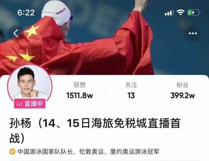 孙杨5小时直播大卖1500万!有粉丝失望:不复出了吗?
