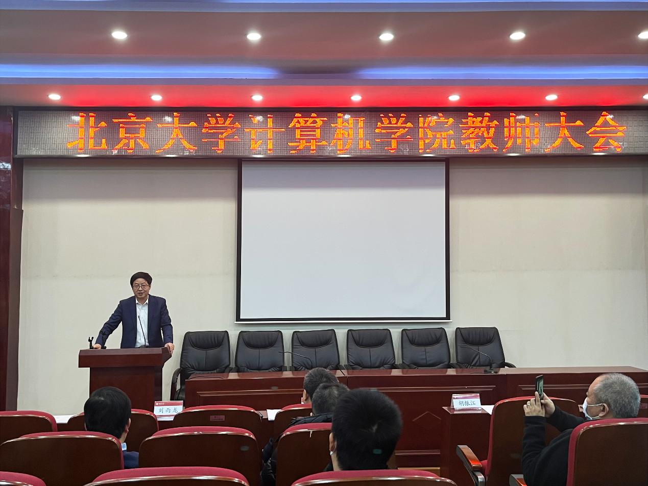 澎湃新闻记者从北京大学计算机学院方面获悉,2022年1月10日,北京大学计算机学院在理科2号楼召开教师大会,北京大学党委常委、副校长张平文院士,党委组织部副部长刘雨龙以及计算机学院部分教职工参加大会。刘雨龙宣读了《关于成立中共北京大学计算机学院委员会的通知》,宣布了胡振江、熊校良和魏朋同志的任职决定,并对相关选拔任命工作进行了说明。计算机学院院长胡振江、党委书记熊校良、副书记魏朋依次进行任职发言,张平文副校长最后做了总结讲话。