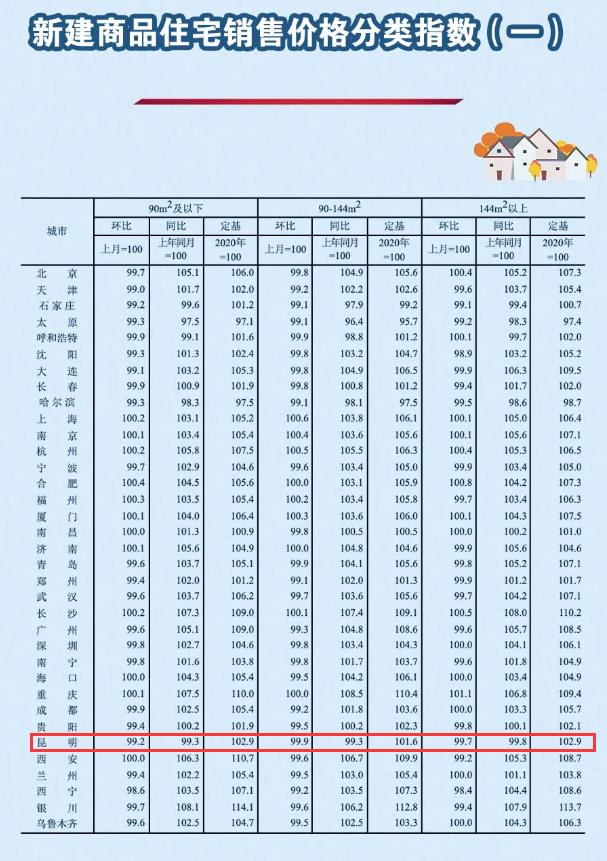 昆明环比下降0.2%