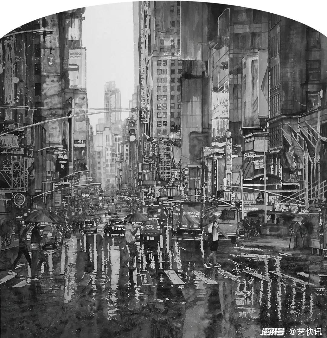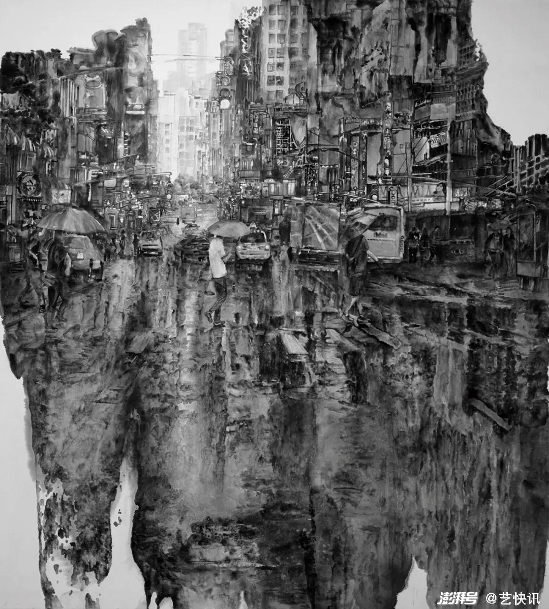 都市水墨的创作在近些年来热度不减,随着社会时代对视觉图像和语境表现方式的改变,以传统山水画的“山水”载体及其语言价值归属已经无法承载当代都市人群审美生活的价值诉求与生命存在,其已不太适合与当代都市生活的人们日常生活形成引导性的价值关联,因此传统山水画的发展与转型成为了当代年轻画家们不得不思考的一个问题。受到这一思想观念的影响,以记录和表现当代社会的都市化进程新风貌与时代性的美学思想,都市题材的出现为山水画的创新发展提供了新的发展方向。这也更好的适应了当代 年轻人在新的时代发展过程中对当代山水画新的审美诉求。