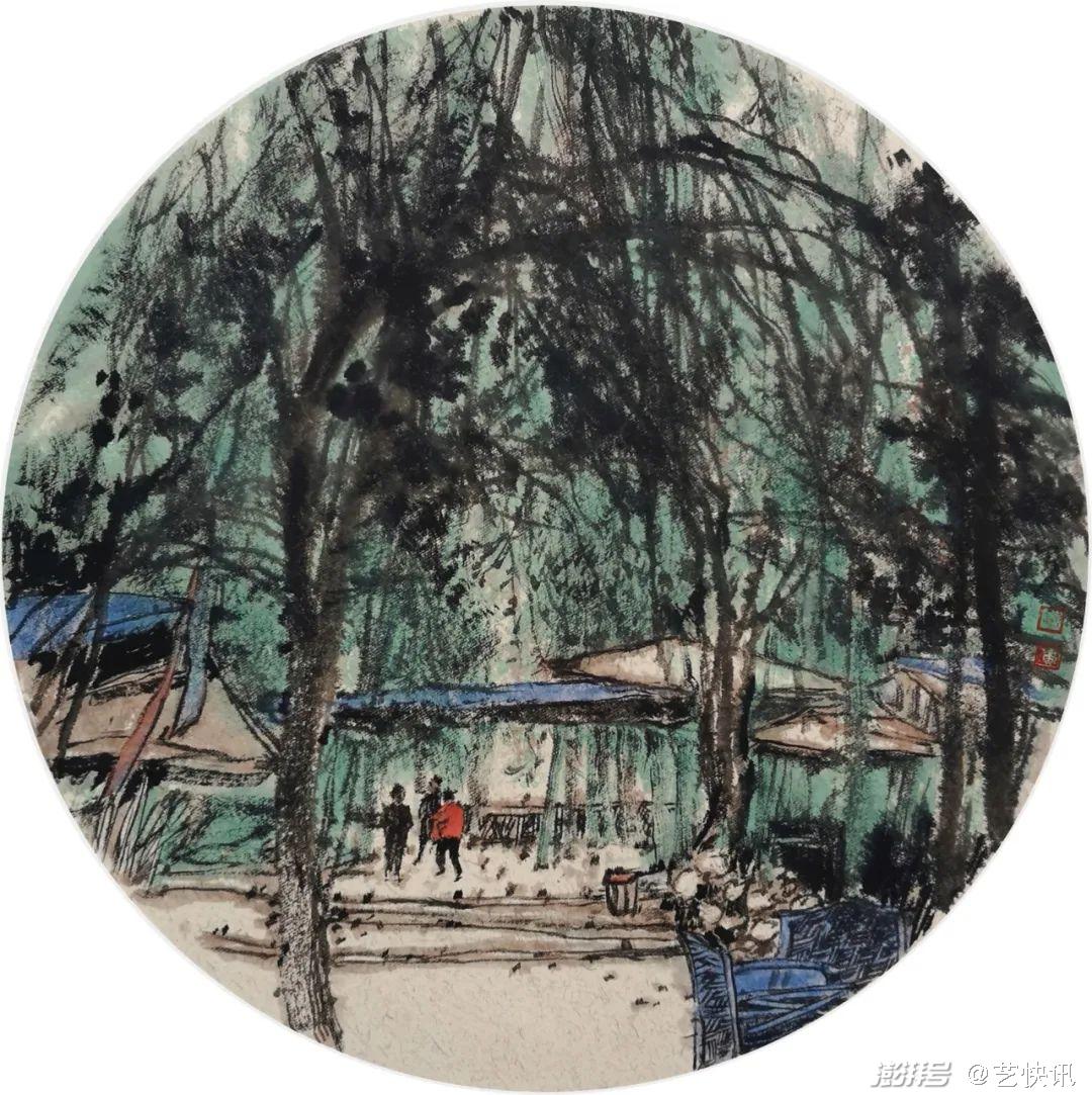 张潘是很有创造精神的一位写意水墨画家。在写意水墨画里,艺术水平要向前推进一步是很不容易的,因为写意水墨画有两个问题存在:第一,它是写意的,但是写意和写实这个关系如何处理,要考虑这个问题。第二,写意性和当代的艺术抽象语言如何处理。假如说,写意完全离开了写实的造型,写意往往显得不够坚实,就是说不耐看;假如写意和抽象的语言相结合,又容易走向荒诞。在《周末一雨》作品里,我们仔细观察会发现。撑伞过街的行人,居然拿着的是没有伞杆的伞。所以,我觉得张潘在这两者之间找到了一个平衡点,他的画写实的基础是好的,但是他抛开了写实的语言,在写意里运用了抽象性绘画的表现方式,发挥了他的主观创造性和构思,并和艺术的想象结合到一起,他的艺术所创造的这种艺术语言或者艺术的符号,跟别人不一样。艺术语言或艺术符号跟别人不一样并难,难的是形成体系和风格,但是在张潘的作品里,他既跟别人不一样,又有他的个性特点。我觉得这是他的艺术很重要的一个优势,我相信他的艺术在这个基础上还会有新的拓展。