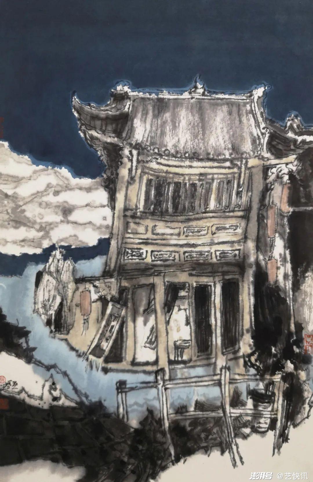 一晃接触都市水墨也有十来个年头,在都市水墨的探索中,我大概分成了三个阶段,第一阶段以工笔的形式进行细致的观察探索,从2010年开始,在北京时画的《梦夏日记系列》用了工笔淡彩的形式进行表达,主要表现的是庭院类的小景致这大概就是南方人喜欢的精致吧,现代社会都市化进程发展使原有的传统山水画中的田园风情正在被新兴的都市繁华所取代,传统山水画所表达的审美理想也在社会的发展中发生了重要的转换。这也为我从工笔转向水墨提供了一定的参考价值。2013年到2014年,如何使传统山水画中的美学思想在当代社会的都市语境下得到更好的继承与发展,这就为当代的山水画画家提出了新的挑战。于是便有了水墨作品的尝试系列《华灯初上系列》,内容大都以祖国的一线大城市为主,华灯初上以夜景表现城市傍晚灯火辉煌的壮观景象,画面主体形象以高楼大厦的建筑为主,基本也就有些打破中国传统山水画的美学观的意味,传统山水是一种诗性美学观,也是人们对宇宙、自然在融合人生感悟情境下的一种特有的理解表达方式,现代都市水墨就像我们80年代大兴的“润泽流畅而不轻浮油滑”让我的水墨都市作品更重水性、重洇染、重淡墨,因而画面极为润泽,同时也重用笔、重渍染、重沉着,来铸就润泽的水墨之境。当然这也不是完全为了画面语言,更是为了精神表达的追求。