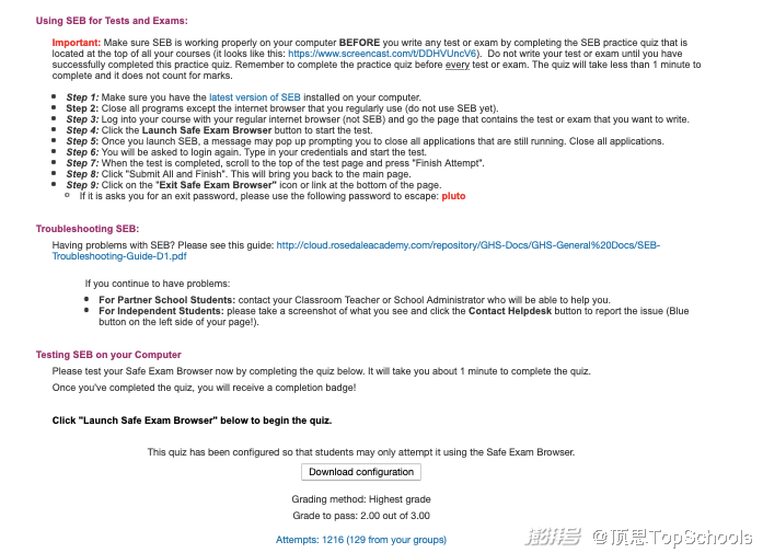 学生考试时必须使用Lockdown Browser(锁屏浏览器),避免使用翻译软件或跳转到搜索引擎获取答案;
