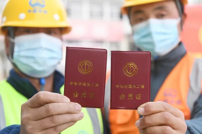 2022 年 1 月 12 日,阜阳市一建筑工地的建筑工人领到全国统一印制的《工会会员证》。 人民视觉/供图