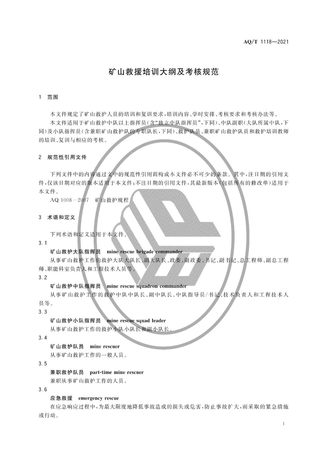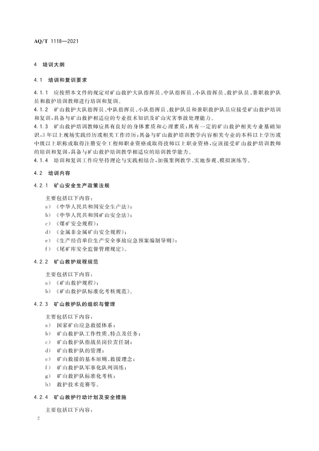 1.AQ/T 1118-2021矿山救援培训大纲及考核规范