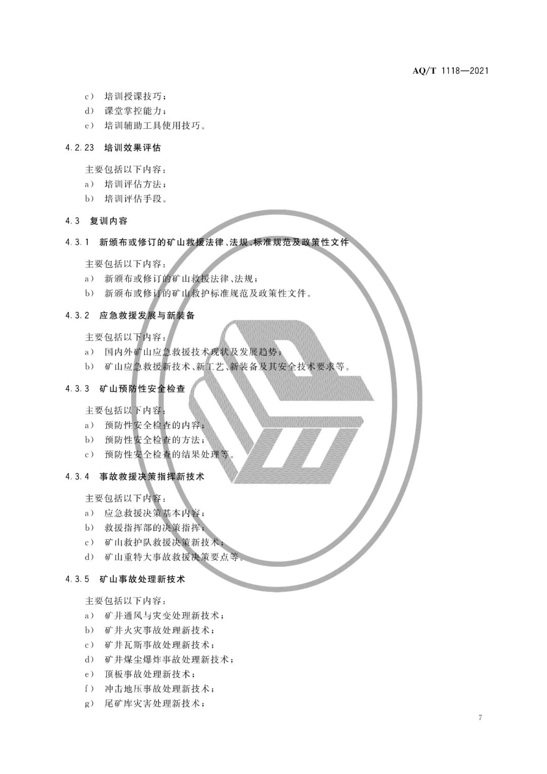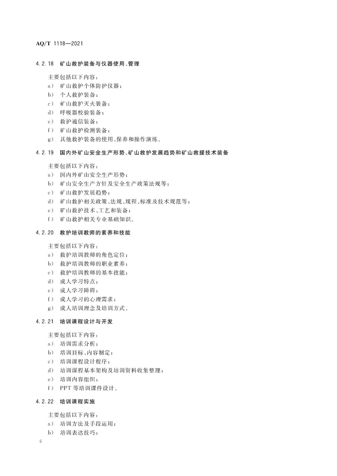 AQ/T 1118-2021矿山救援培训大纲及考核规范