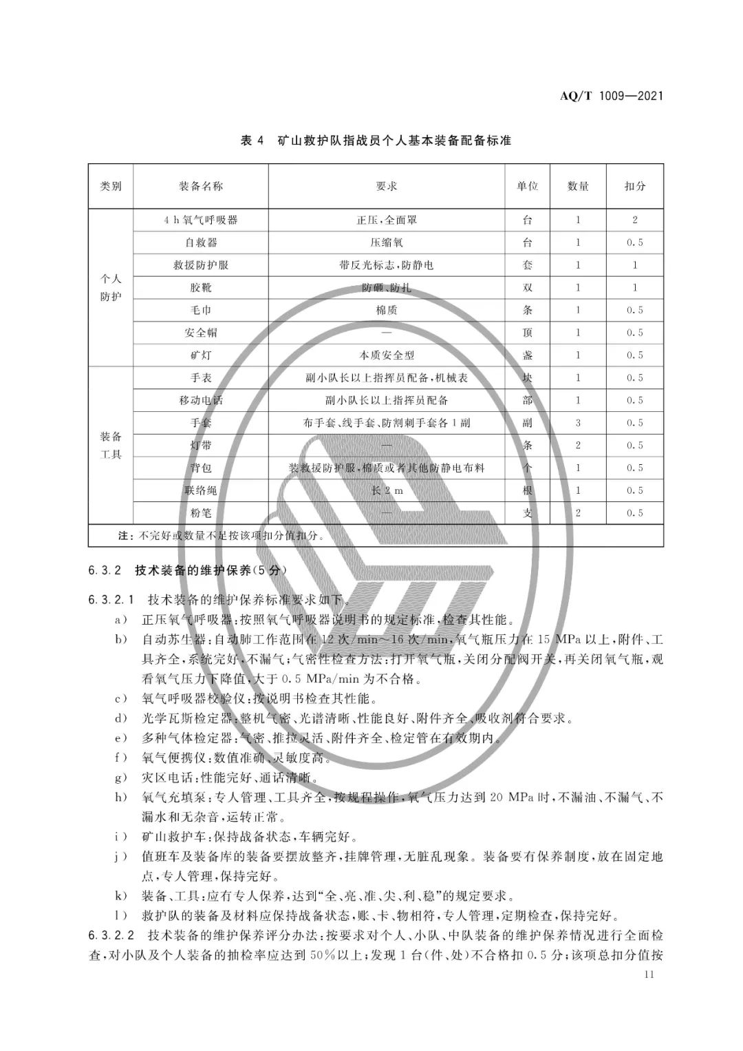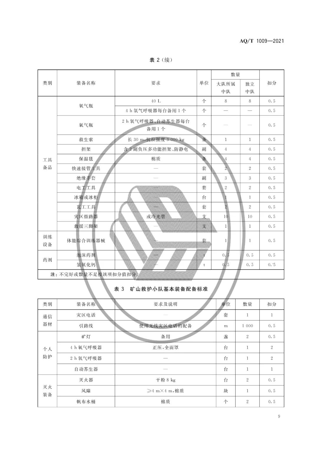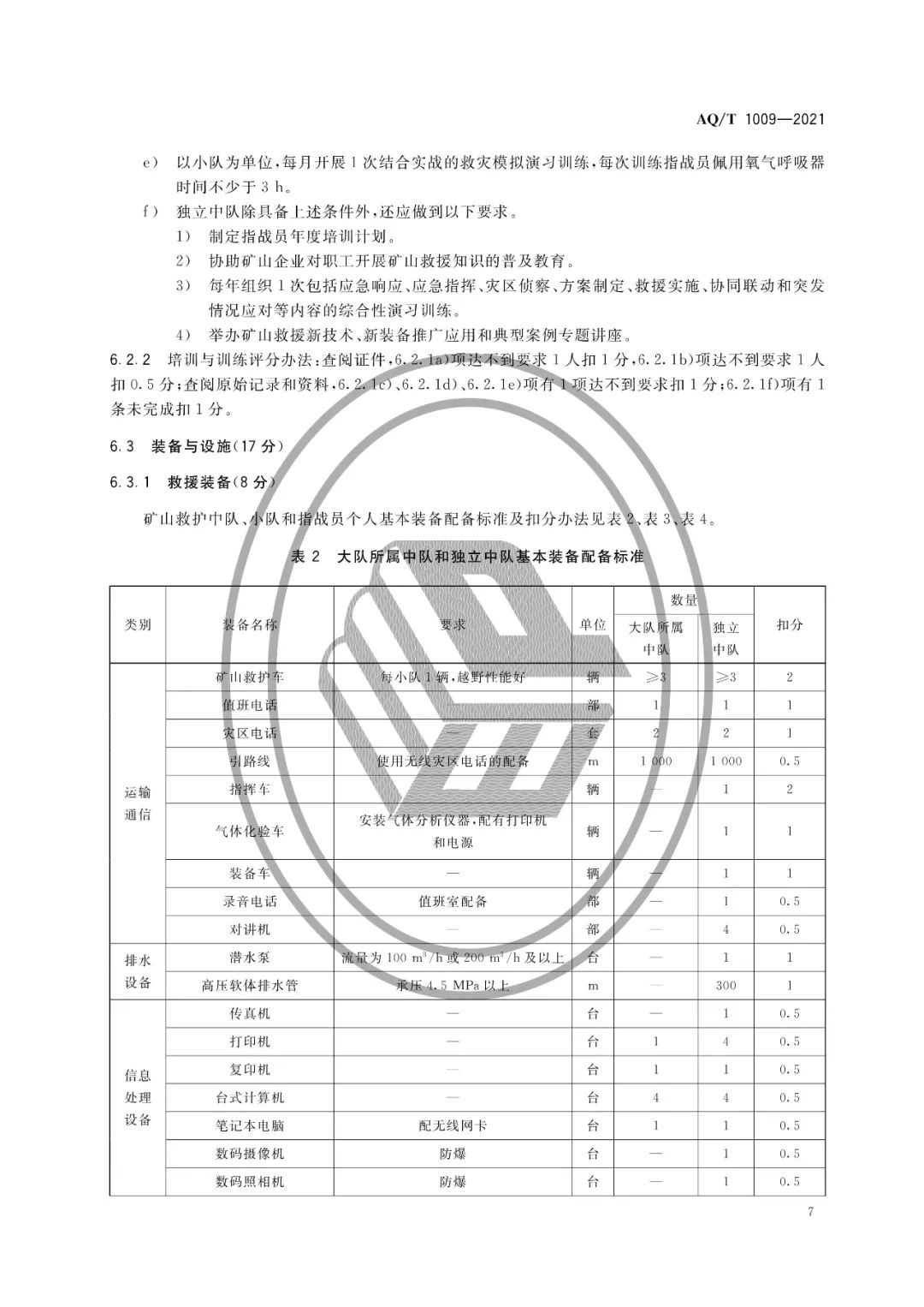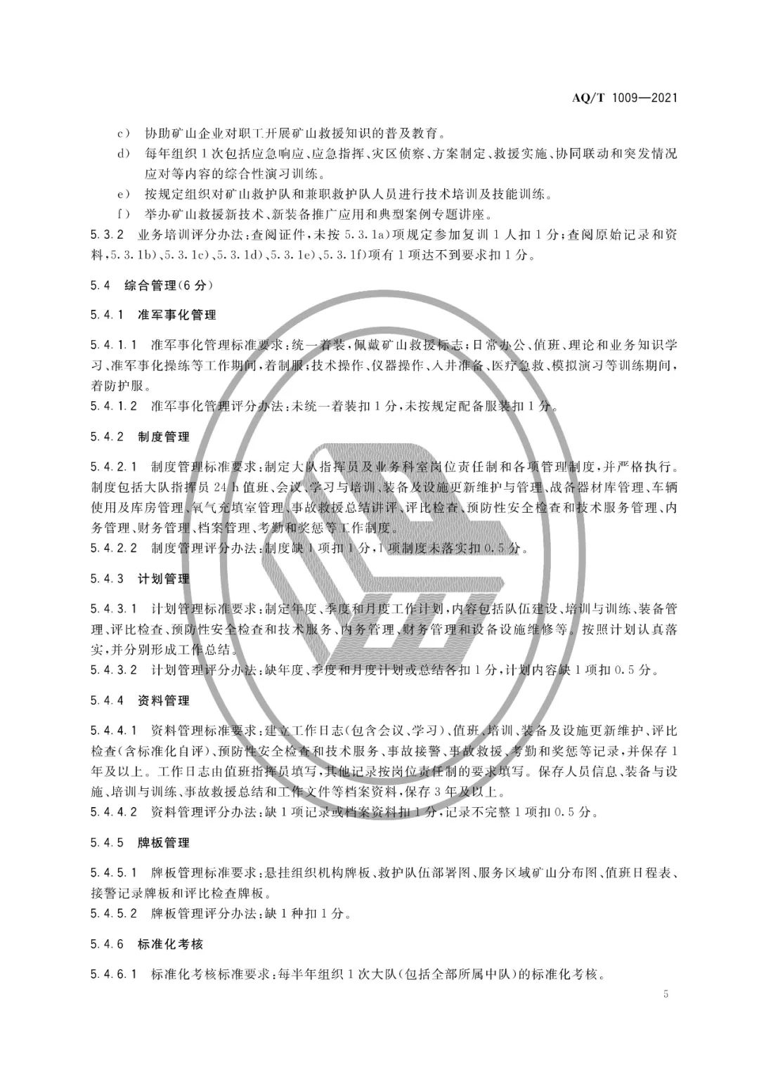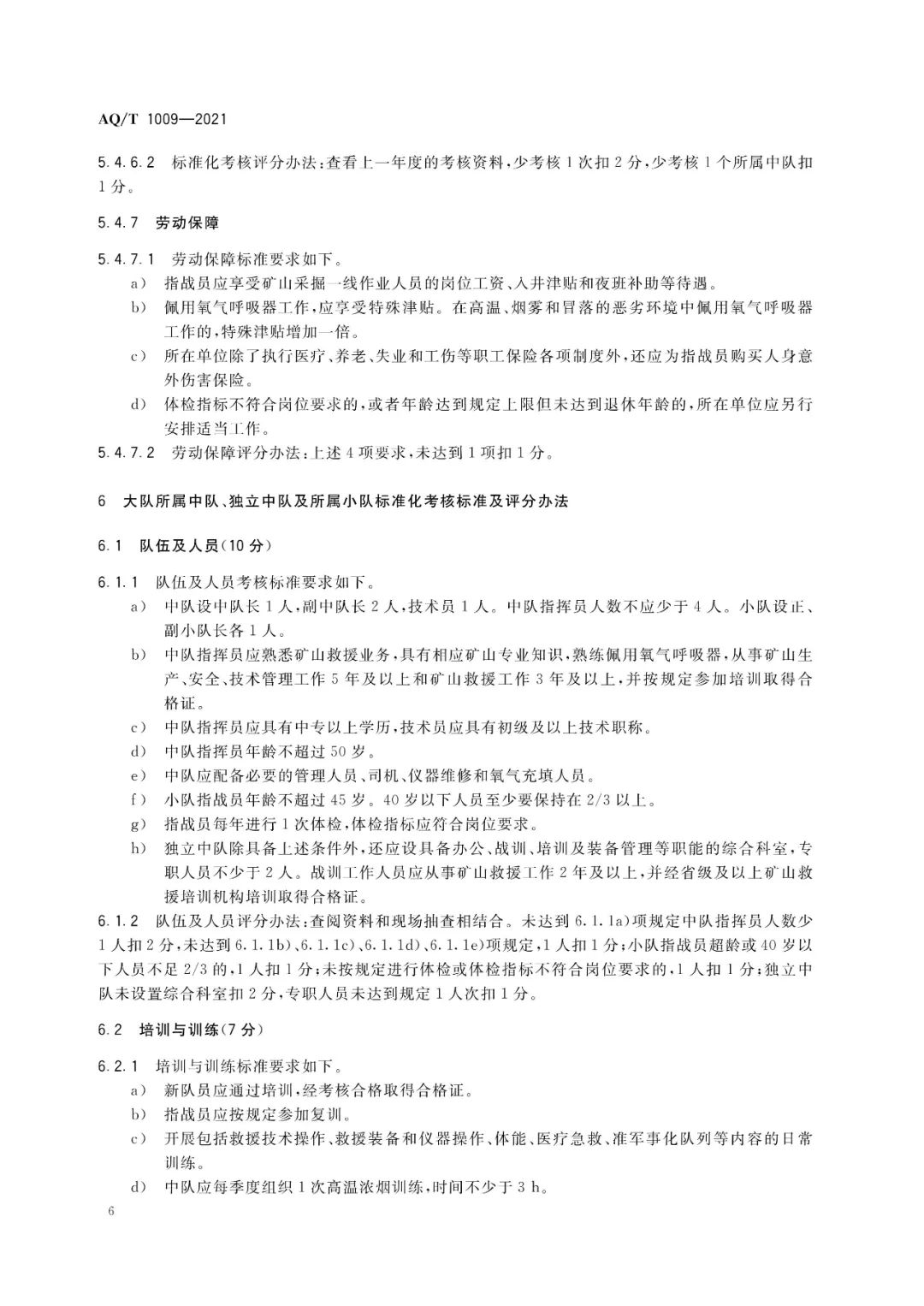AQ/T 1009-2021矿山救护队标准化考核规范
