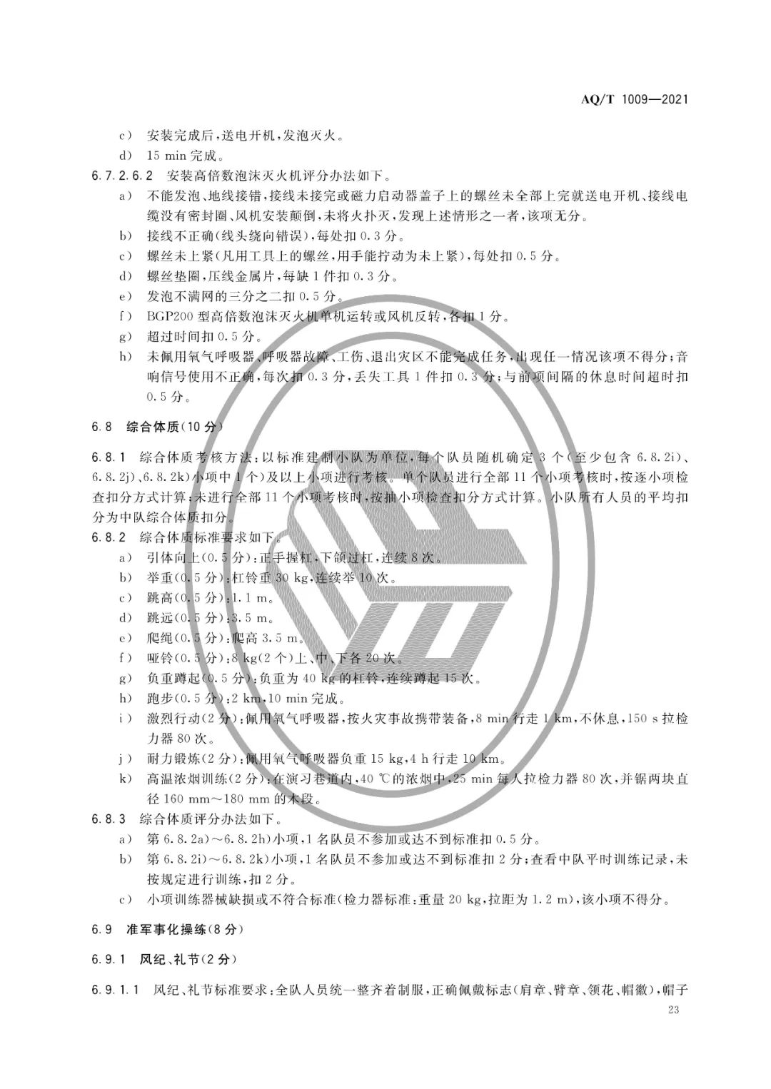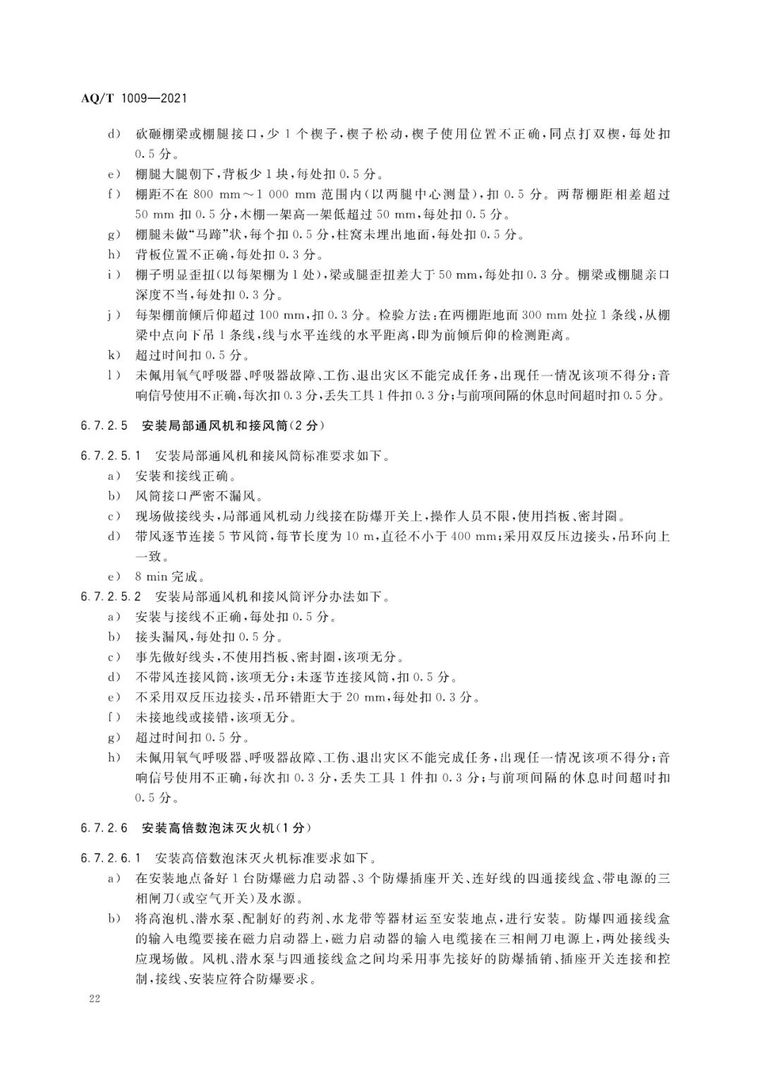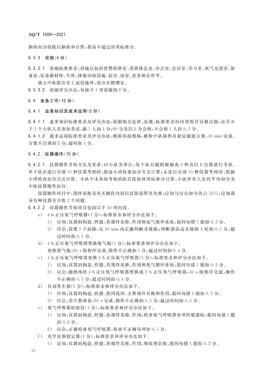 规定了矿山救护队标准化考核的一般规定、矿山救护大队标准化考核标准及评分办法、大队所属中队和独立中队标准化考核标准及评分办法。